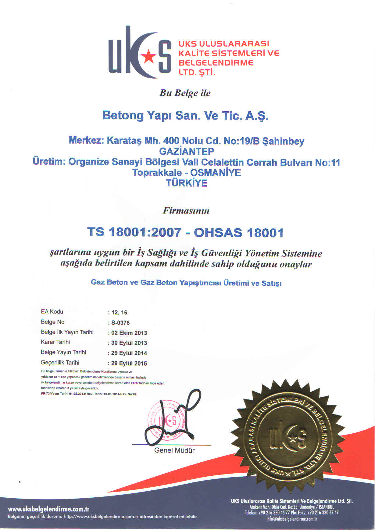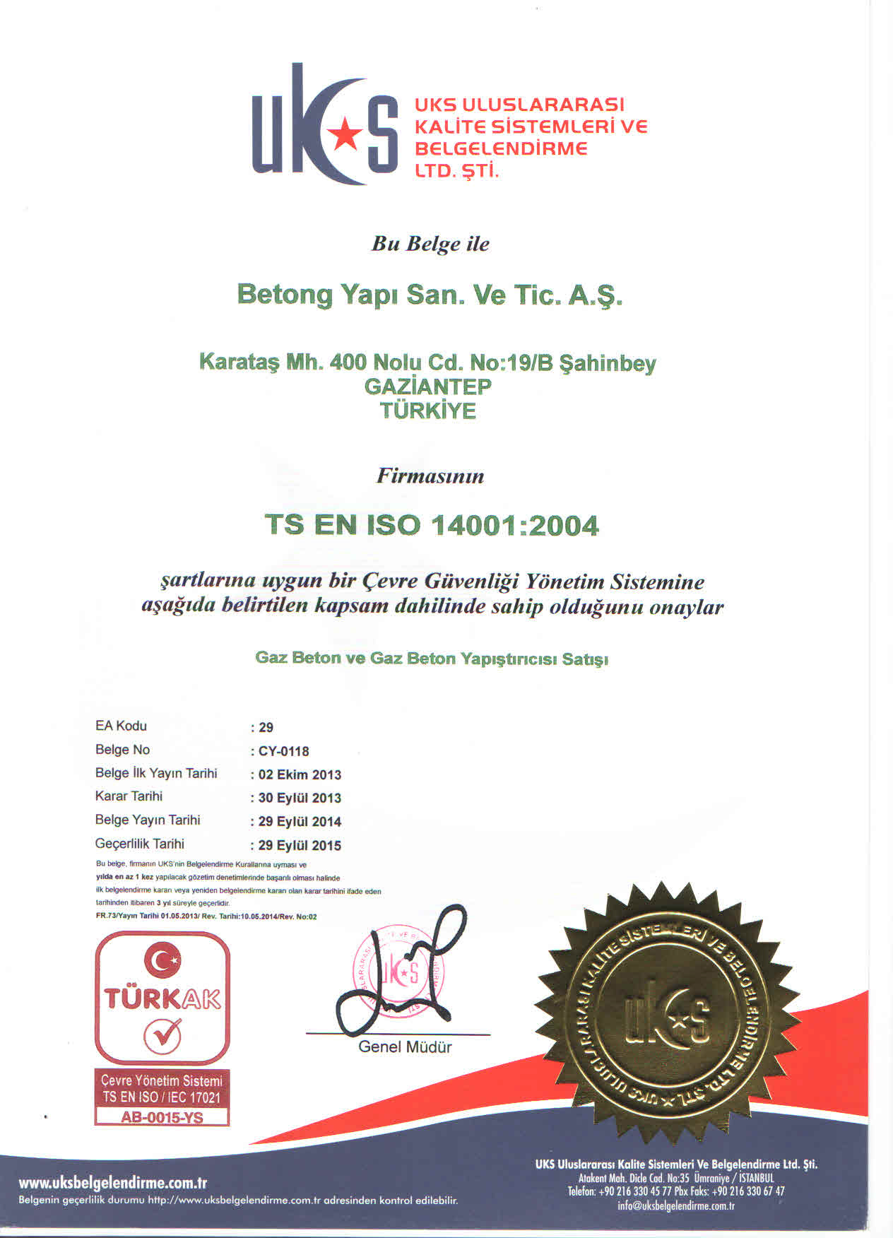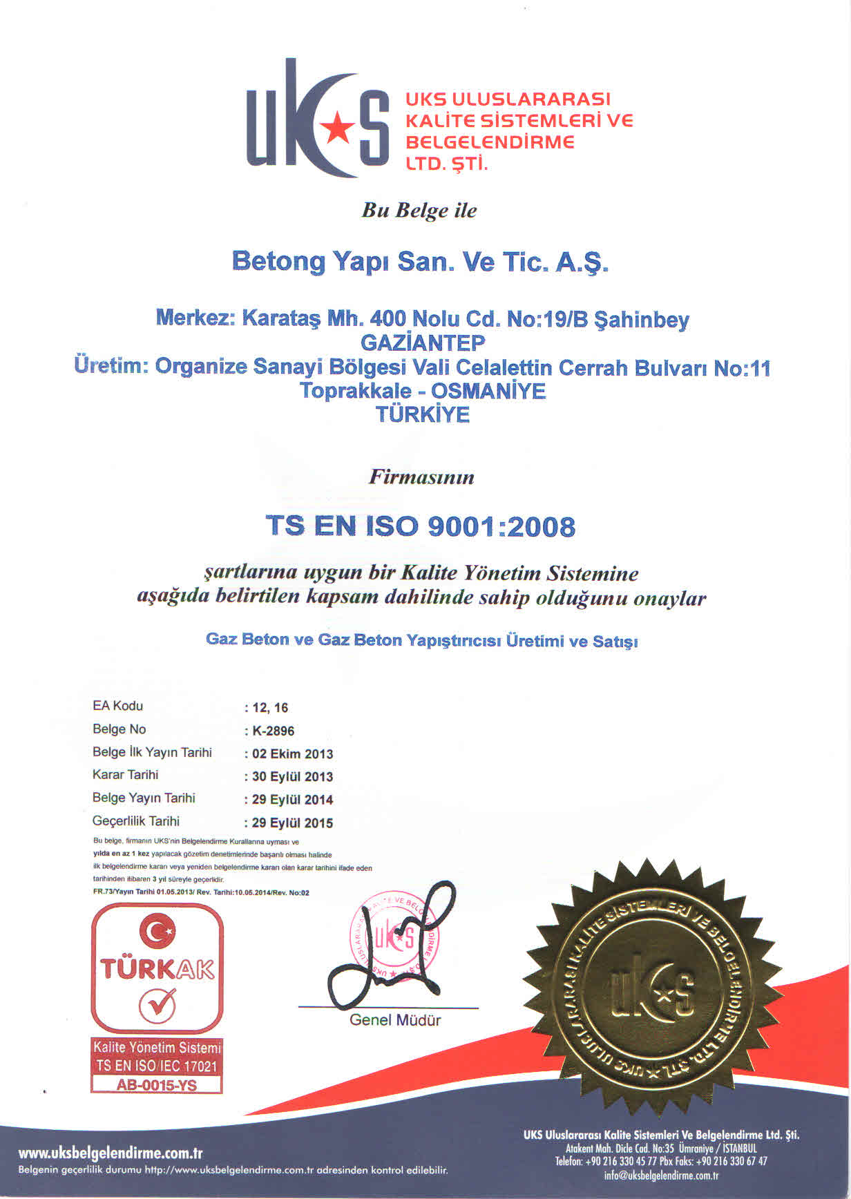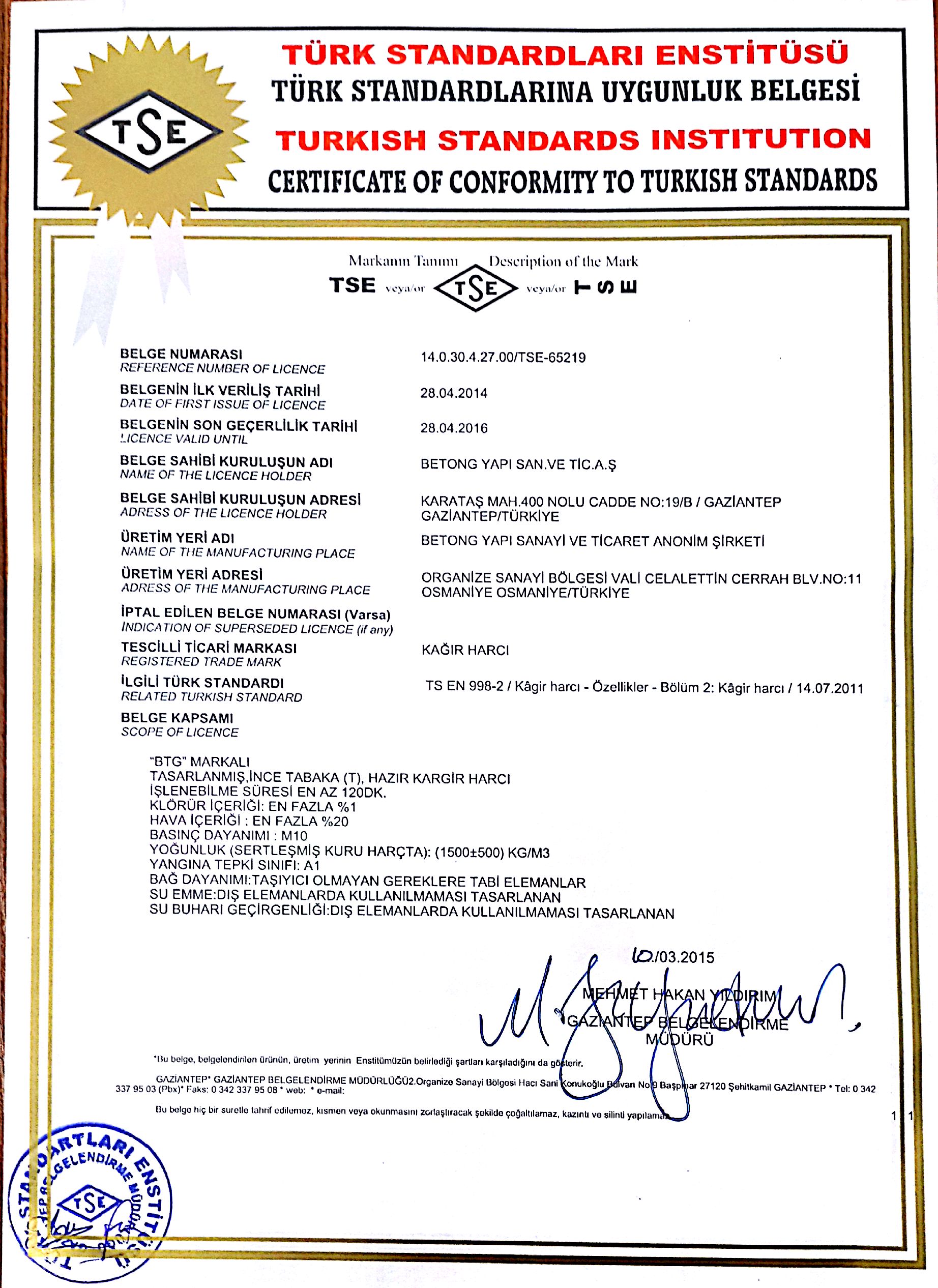 Betong Construction and Trade Co. Structural elements of the BTG aerated concrete, to meet the needs that occur in our countryand abroad Osmaniye Organized Industrial Zone on 20,000 m2 of land, including 100,000 m2 of covered area in 2014 and began production.
