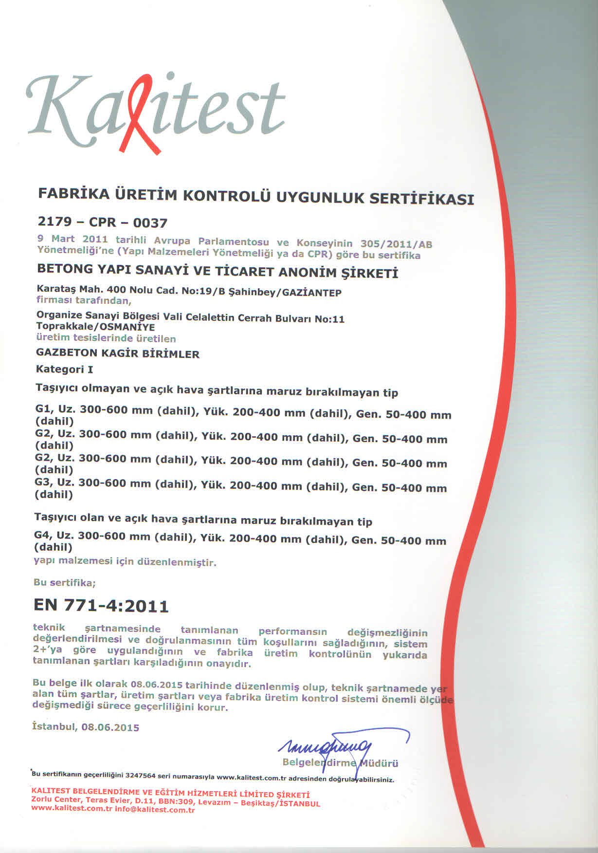 Betong Construction and Trade Co. Structural elements of the BTG aerated concrete, to meet the needs that occur in our countryand abroad Osmaniye Organized Industrial Zone on 20,000 m2 of land, including 100,000 m2 of covered area in 2014 and began production.